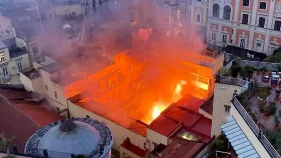 2026年2月17日凌晨6点30分左右,位于那不勒斯切亚区(Chiaia)繁华中心地带的桑纳扎罗剧院突发大火。目击者称,火势蔓延极快,短时间内浓烟便笼罩了整条切亚街。由于剧院内部大量使用木质结构和易燃织物,火光迅速冲破屋顶,火龙吞噬了剧院标志性的穹顶。消防部门在接到警报后,迅速出动了至少5支专业中队奔赴现场。然而,剧院地处老城区,密集的建筑群和复杂的内部通道给灭火工作带来了极大挑战。上午时分,由于支撑结构烧毁,剧院的木质穹顶彻底崩塌,直接坠落砸向了下方的观众席(platea),剧院内部结构几乎完全瓦解。火灾不仅摧毁了剧院,还波及了与之相连的居民住宅楼。那不勒斯省消防指挥官朱塞佩·帕杜阿诺(Giuseppe Paduano)在现场证实,由于火势猛烈且烟雾有毒,周边空气变得异常污浊。